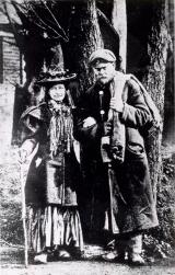 From time-to-time Grimes and Emma, notorious tramps, called and were always allowed to spend the night in the warmth of the blacksmiths shop. I was fascinated by Emma's hair, which she wore in shiny black plaits showing below her old felt hat; Grimes had a beard and wore a cloth cap. Other occasional visitors were hawkers of cheap but pretty jewellery, cream cheeses on straw mats and the popular onion man on his bicycle.